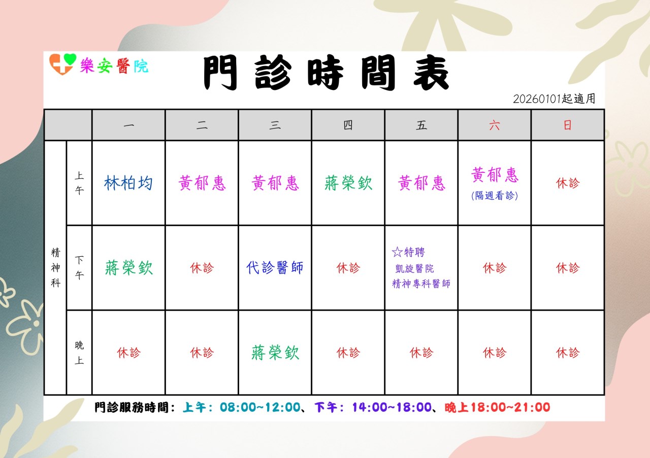 自20260101起,門診時間表異動