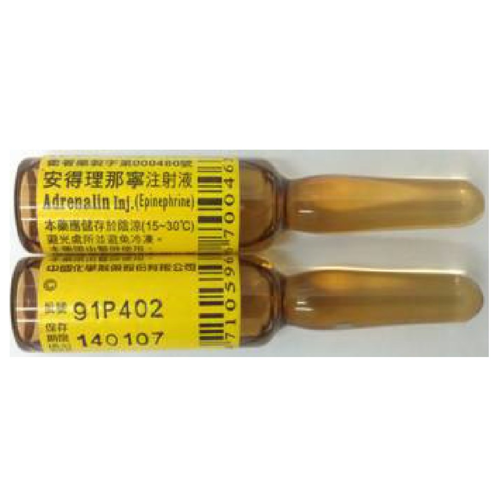 - 過敏性反應治療劑:肌肉或皮下注射,起始劑量相當於Epinephrine 200~500mcg(0.2~0.5mg),視需要每 10~15 分鐘重覆給藥。必要時每一劑量可增加到 1mg 的最高劑量。