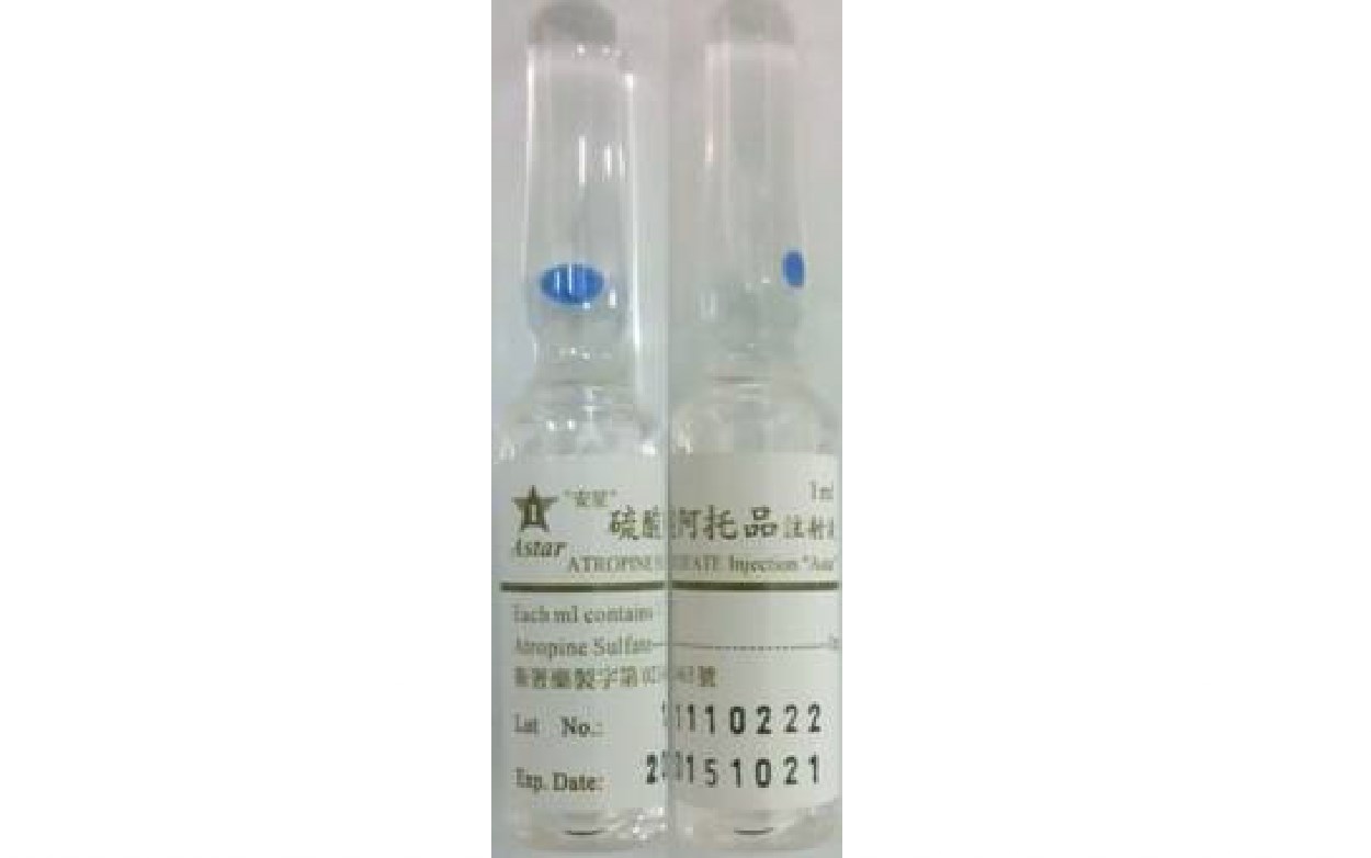 - 急性心肌梗塞引發的心搏徐緩:起始劑量:靜脈注射0.4~1mg。需要時每1-2小時可逐漸增加至最大劑量2mg。